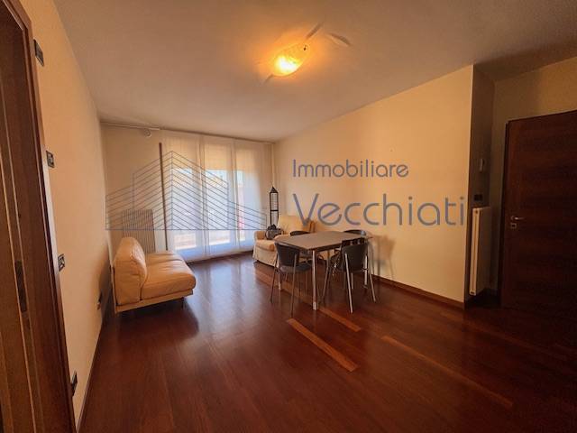 In contesto signorile di recente costruzione l'Immobiliare Vecchiati vende in esclusiva Appartamento arredato posto all'ultimo piano (secondo) con ascensore, ingresso-soggiorno-cottura, terrazzo abitabile con tenda esterna, camera matrimoniale, servizio con doccia, ripostiglio lavanderia, garage doppio di mq 24 e cantina di mq 9. Zanzariere, climatizzatore, riscaldamento autonomo.