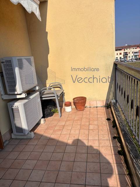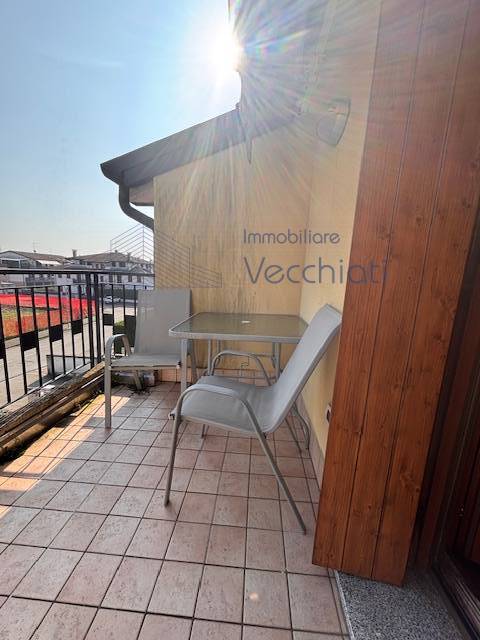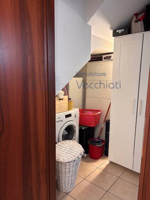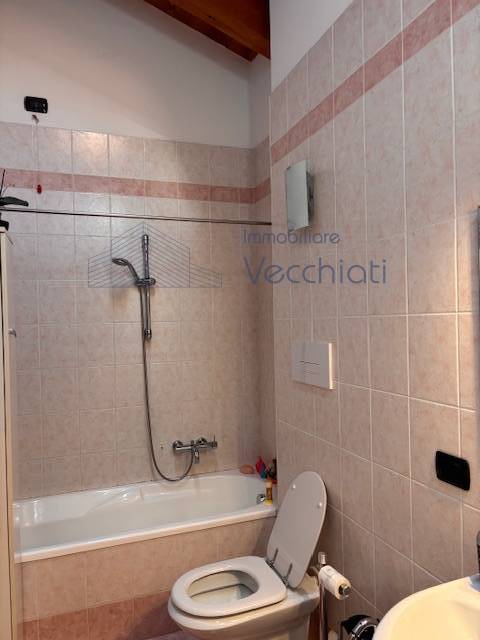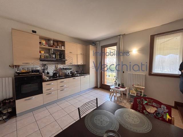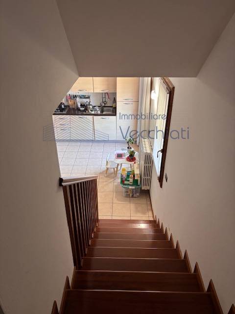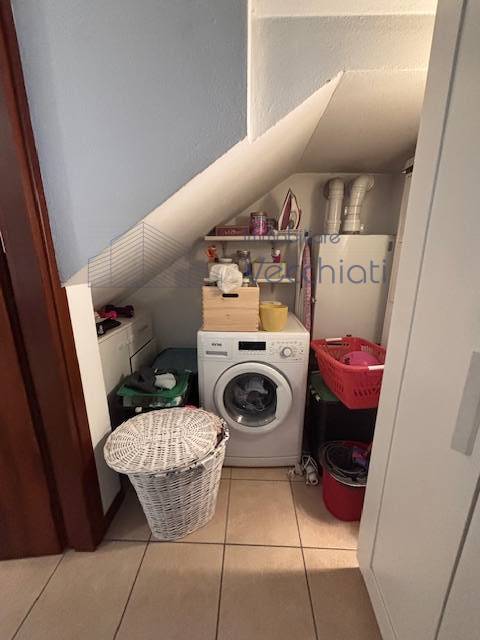 L'appartamento al piano primo è composto da ingresso con soggiorno-cottura, terrazzo di 7 mq , lavanderia nel disimpegno del bagno e bagno con doccia, al secondo piano con bel soffitto travato a vista troviamo una camera matrimoniale grande con terrazzo abitabile di mq 8, studiolo, bagno con vasca.