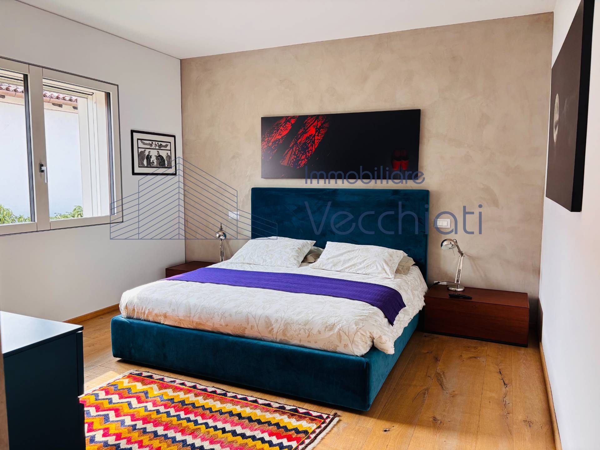 Le camere sono 3, luminose e spaziose, come i bagni sono 3 e dotati di tutti i comfort moderni piu' al piano seminterrato stanza pluriuso con caminetto, lavanderia, e stireria. La Villa è arredata con gusto e stile, con materiali di qualità e finiture di pregio.