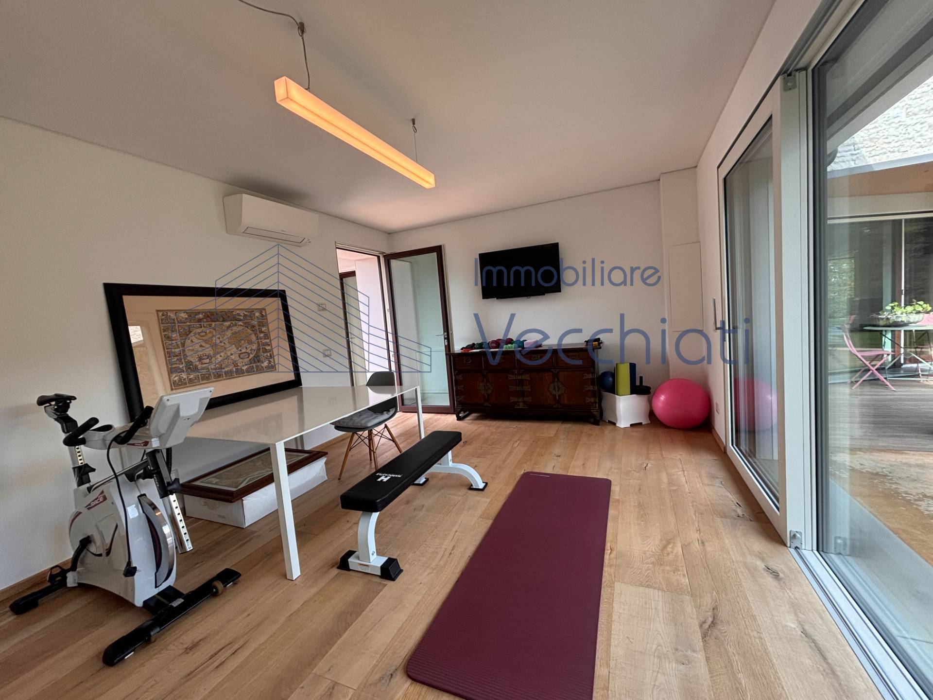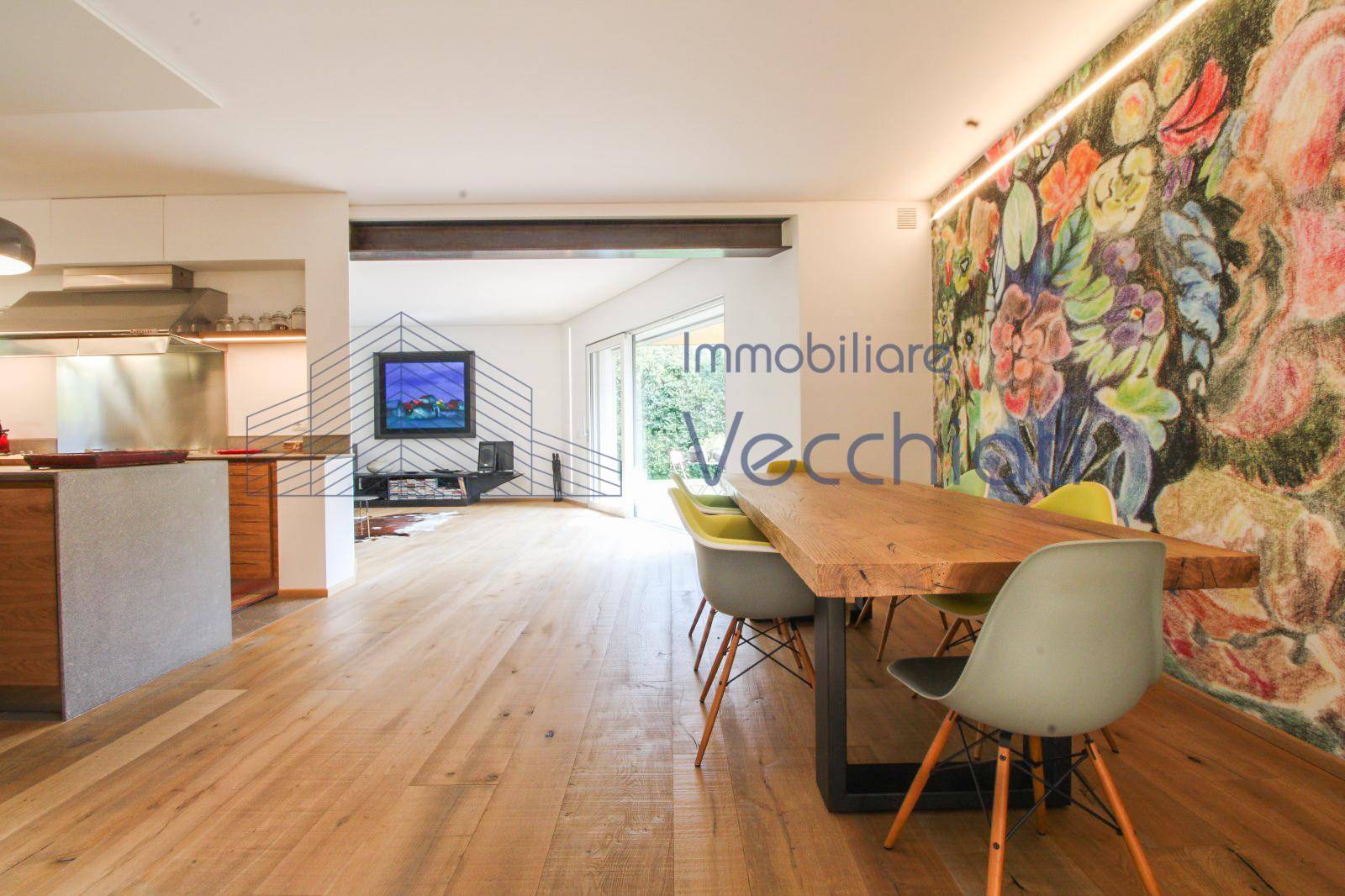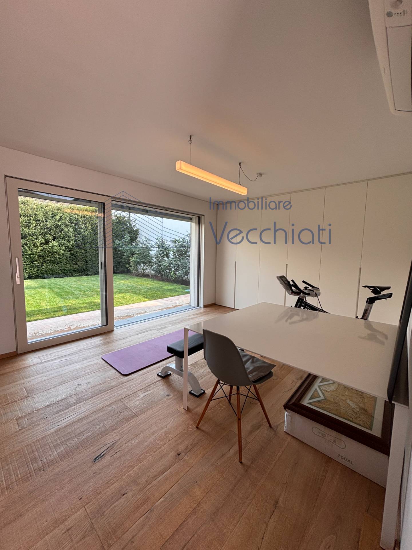 La cucina abitabile è spaziosa e completamente attrezzata con elettrodomestici di gran qualita', perfetta per chi ama cucinare e trascorrere del tempo in compagnia, il soggiorno pranzo luminosissimo gode di una visuale nel verde grazie alle ampie vetrate. Sempre al piano terra una stanza pluriuso di mq 27 immersa nel verde. Altro punto forte di questa proprietà è sicuramente il giardino , un'oasi di privacy, tranquillità e bellezza dove rilassarsi e godere del clima mite di Treviso.